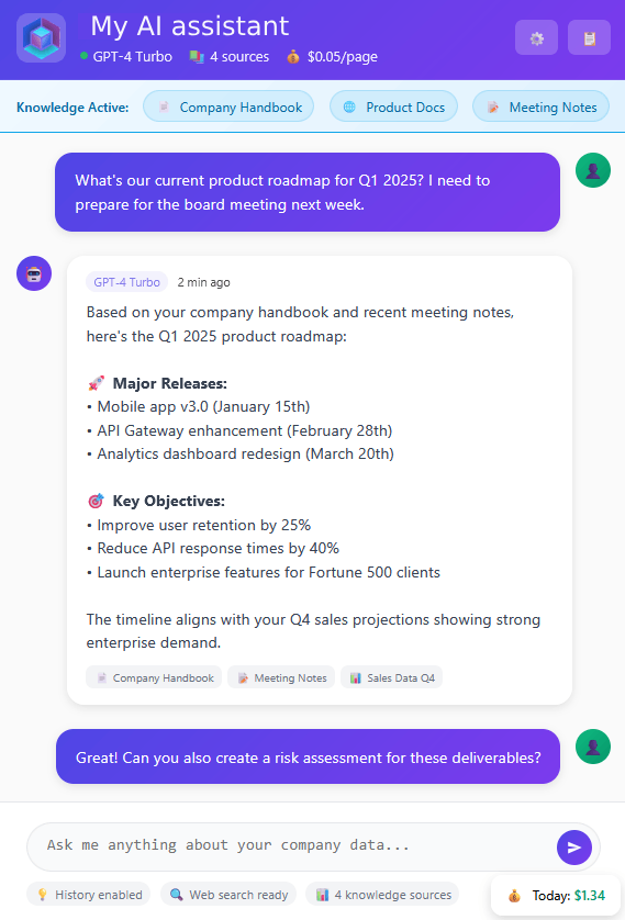 Dedicated AI agent interface, powered by your data and your choice of AI models.