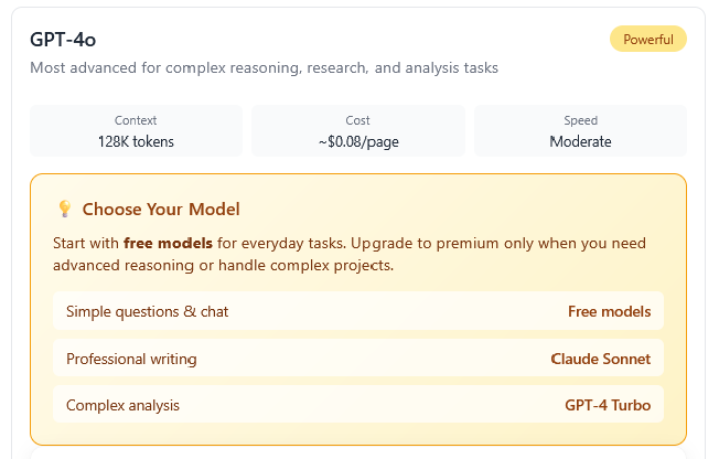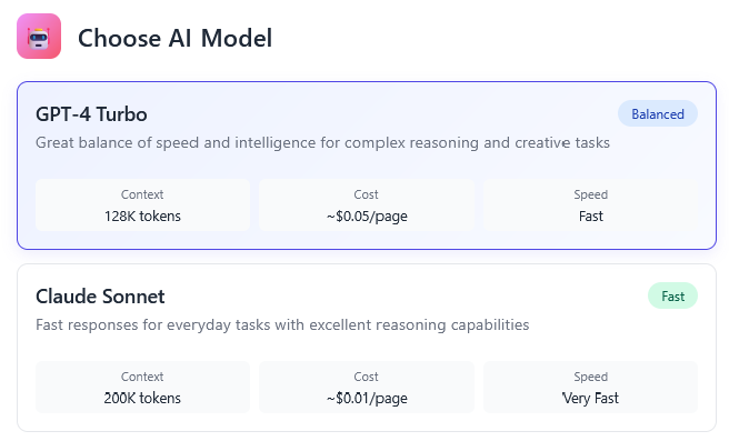 Switch between AI models, select data sharing, costs boundaries, behavior, tailor your AI assistant to your specific needs.